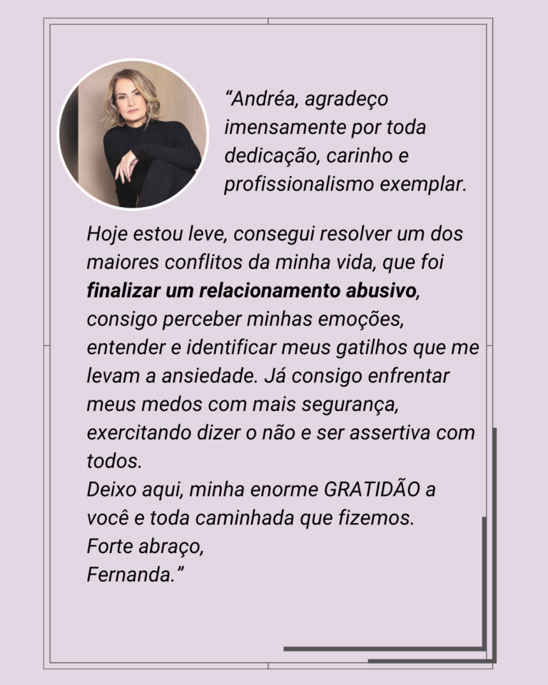 Nós vamos juntas desenvolver um Plano Futuro de acompanhamento, para aprofundar o seu tratamento, utilizando a Terapia do Reprocessamento Generativo (TRG), com o intuito de te libertar desse ciclo de relacionamentos fracassados.