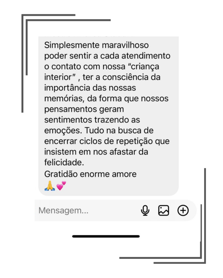 Esse é o momento mais importante da nossa sessão. Nós vamos rastrear a origem dos seus relacionamentos fracassados, traçando o mapa familiar. Esse mapa vai nos dar um direcionamento e clareza dos pontos que precisam ser tratados.