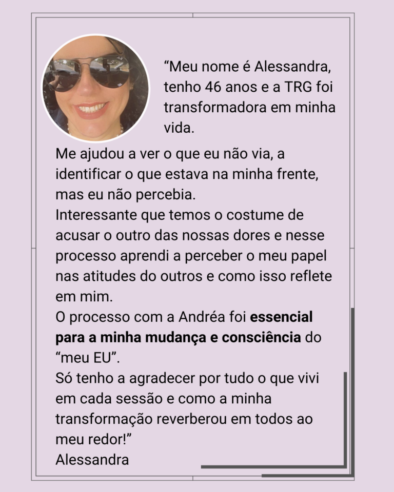 Decidi, então, fazer a formação em Terapia do Reprocessamento Generativo – TRG e a lógica da metodologia veio ao encontro das minhas expectativas. Vivenciei todos os processos e comecei a atender pessoas com dores e sofrimentos emocionais e os resultados foram libertadores.